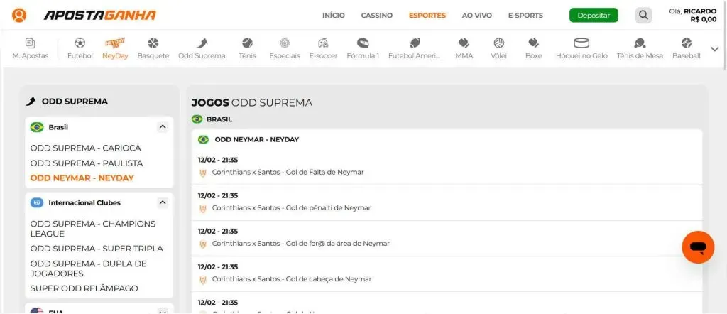 O Ney Day na Aposta Ganha é uma oferta para mercados envolvendo Neymar nos jogos pelo Santos.