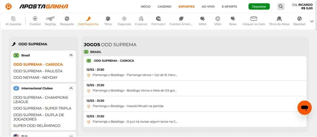 A Odd Suprema está disponível para jogos de futebol, basquete, tênis e muito mais.