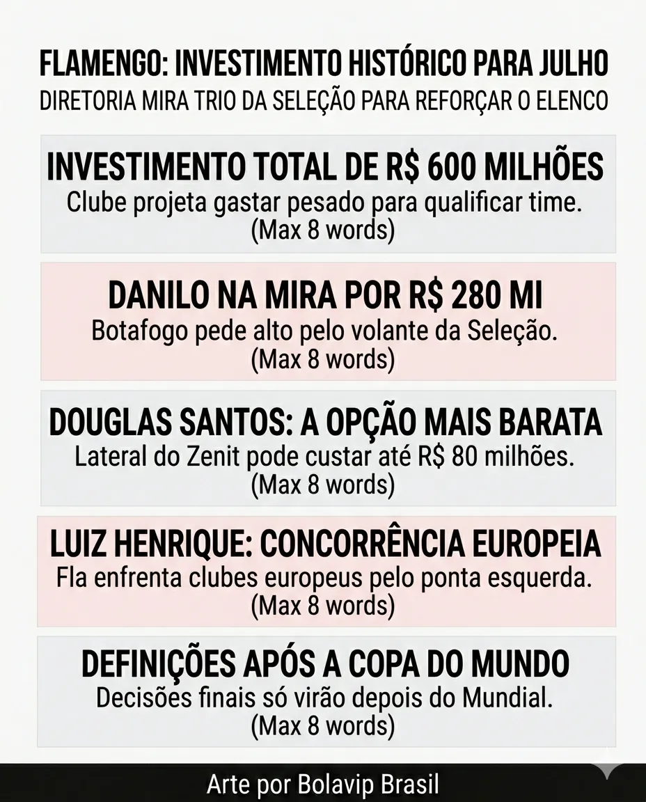 Flamengo mira Danilo, Douglas Santos e Luiz Henrique e pode investir mais de R$ 600 milhões