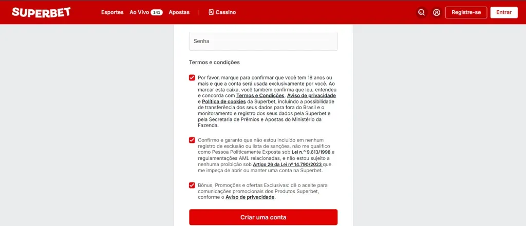 Se cadastrar na Superbet é rápido e fácil. Em poucos passos os usuários completam o processo e podem acessar inúmeras opções de apostas assim que a conta estiver ativa.