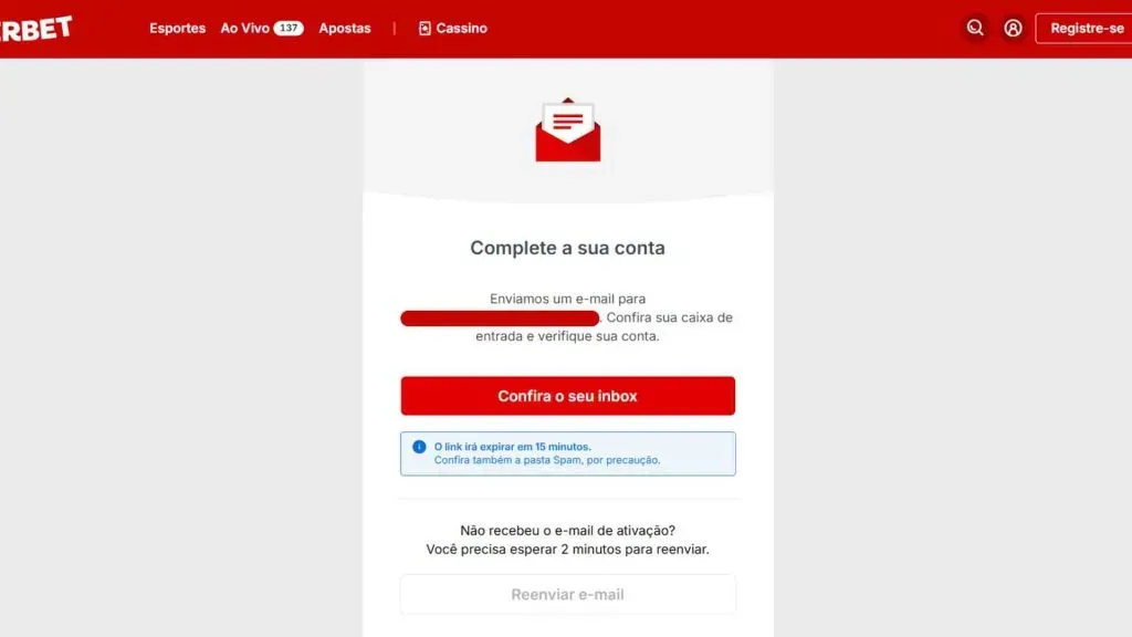 6. Ao concluir o preenchimento, a Superbet apostas esportivas enviará um e-mail para o endereço registrado, contendo um link de ativação.